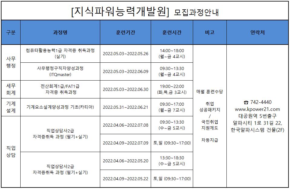 지식파워능력개발원 5월 개강일정입니다.